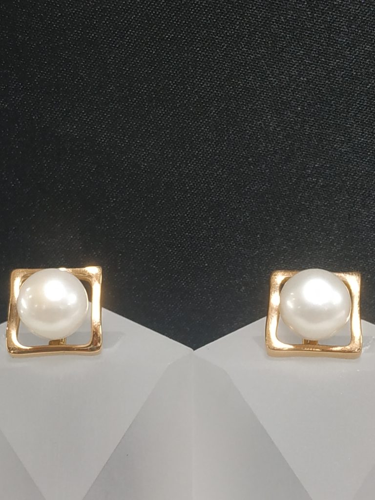 Pendientes Oro Rosa 18K Cuadrado con Perla
