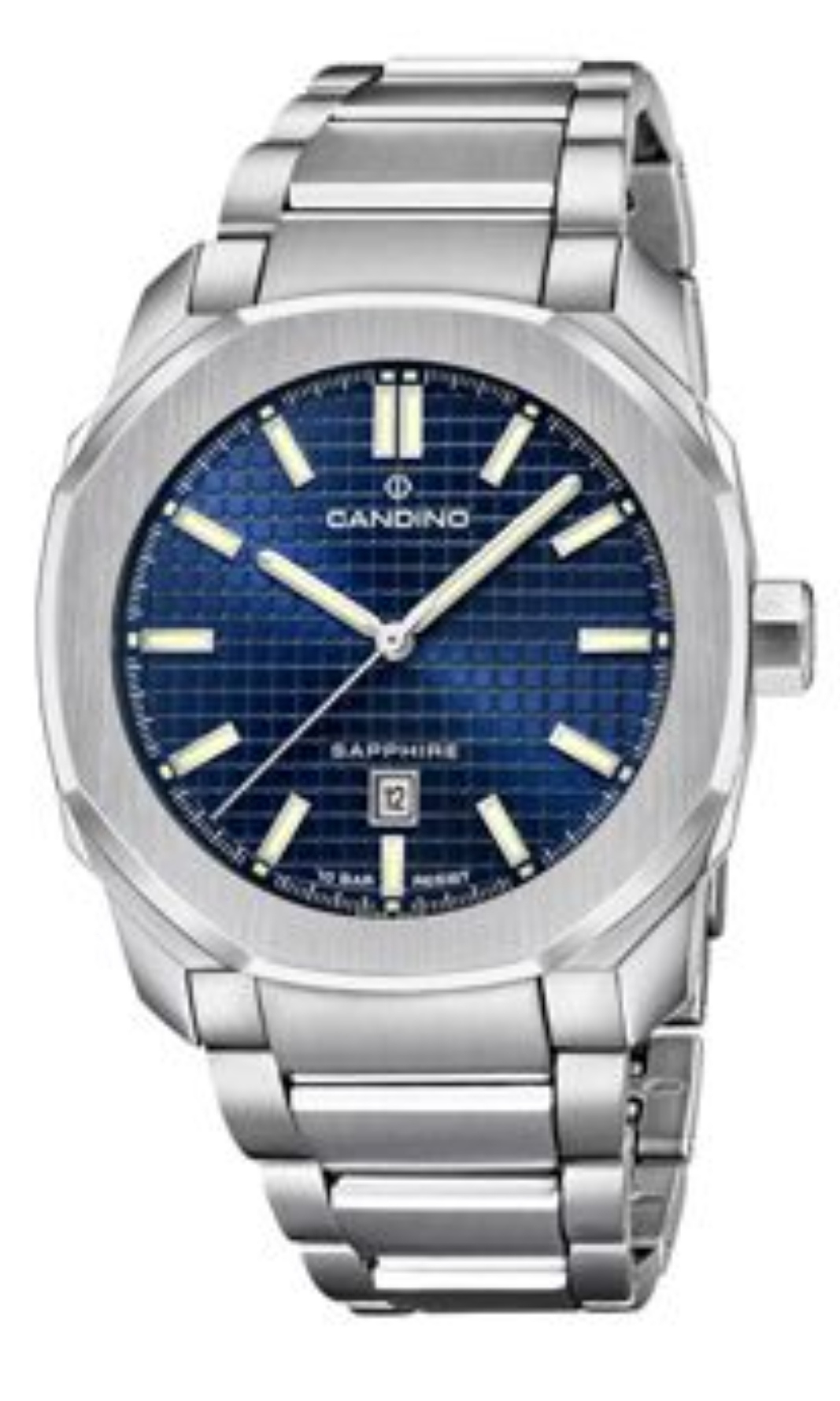 La esfera azul oscuro con patrón cuadriculado le confiere una personalidad única. Los índices aplicados con material luminiscente garantizan una legibilidad perfecta en cualquier condición de luz.