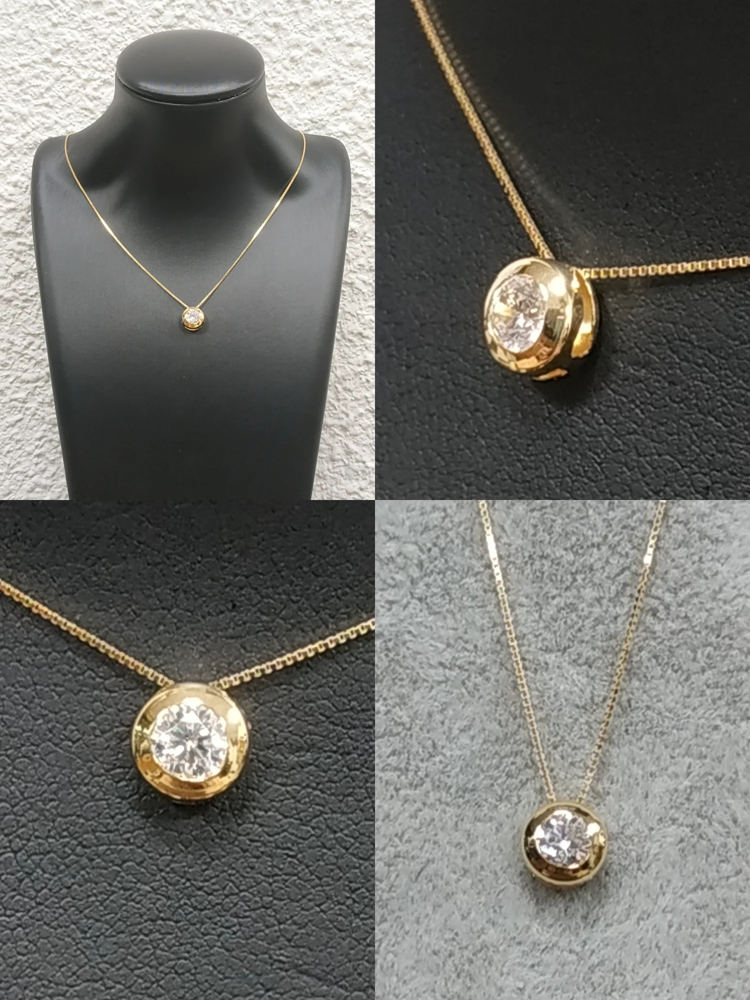 Sofisticado colgante solitario elaborado en oro amarillo de 18 kilates con una circonita de alta calidad engastada en chatón. Montado sobre una elegante cadena veneciana.