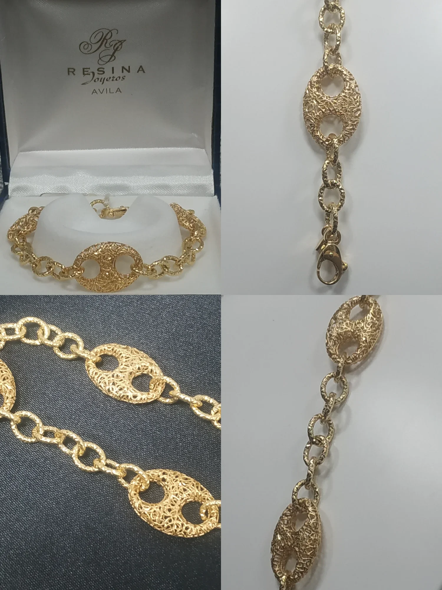 Espectacular pulsera elaborada en oro amarillo de 18 kilates con eslabones tipo calabrote calados y acabado diamantado-satinado. Una pieza de gran presencia y peso sustancial.