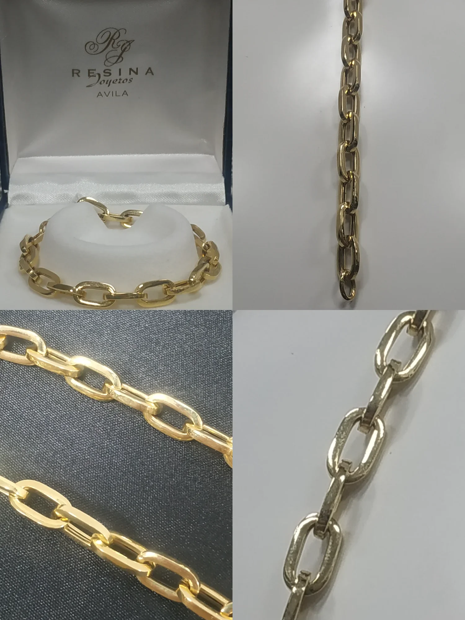 Elegante pulsera de cadena forsa larga hueca en oro amarillo de 18 kilates. Diseño clásico con eslabones ovales de gran tamaño.