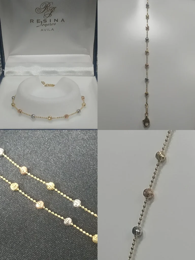 Pulsera Bolas Facetadas Tricolor Oro 18K