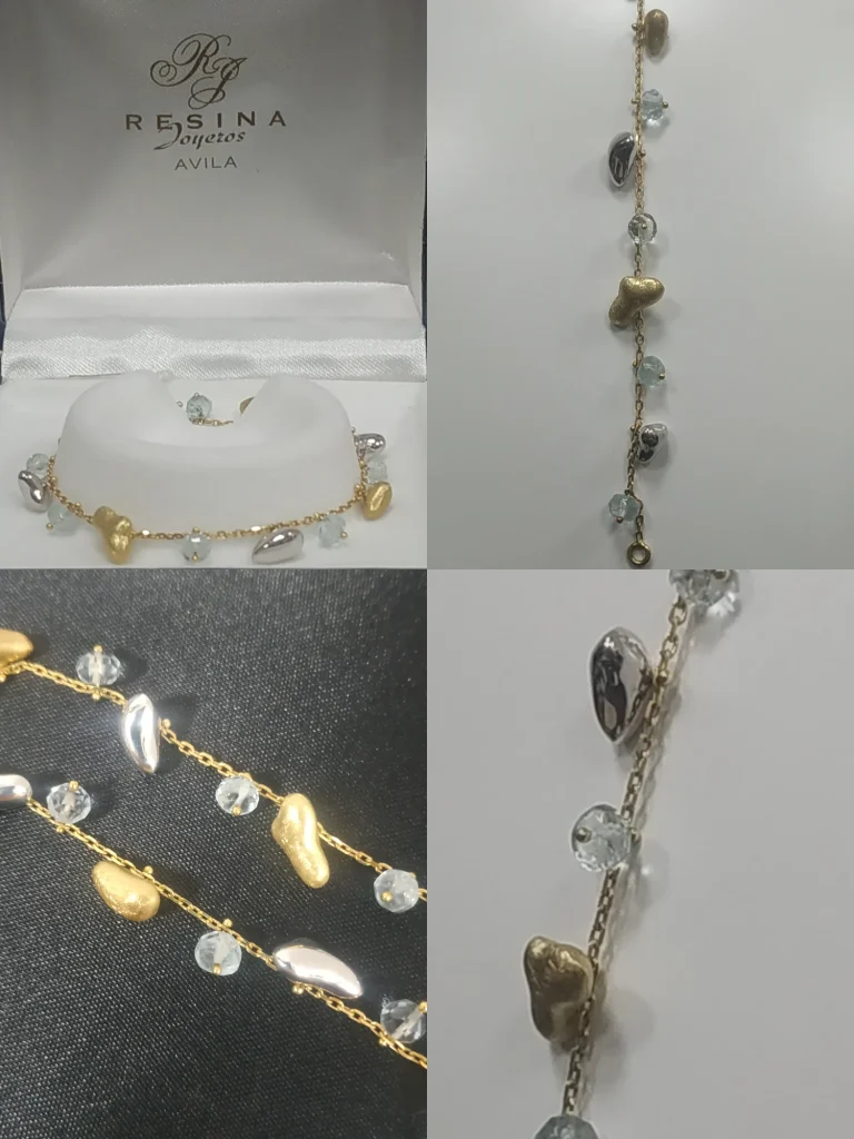 Pulsera Pepitas Bicolor Aguamarinas Oro 18K